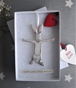 The bunnies are 9cm high and 7cm wide and the hearts are 3cm