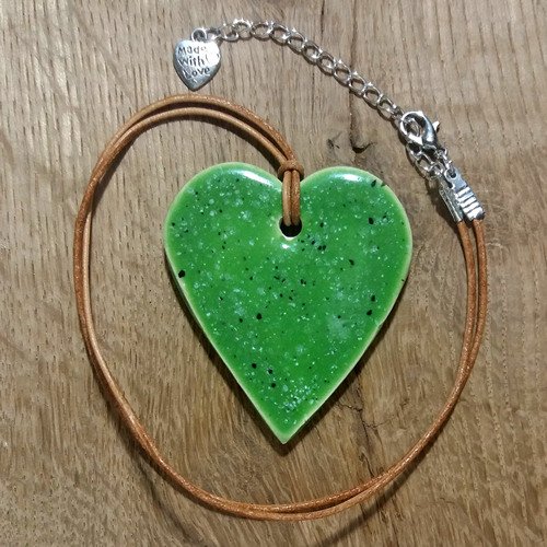 A zingy lime coloured glaze with tiny speckles of black and white.