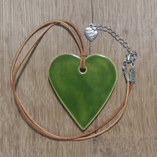 A lovely natural earthy leaf-green heart necklace.