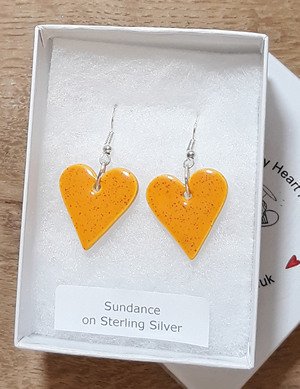 A sunshine colour of soft yellow orange with tiny brown speckles.